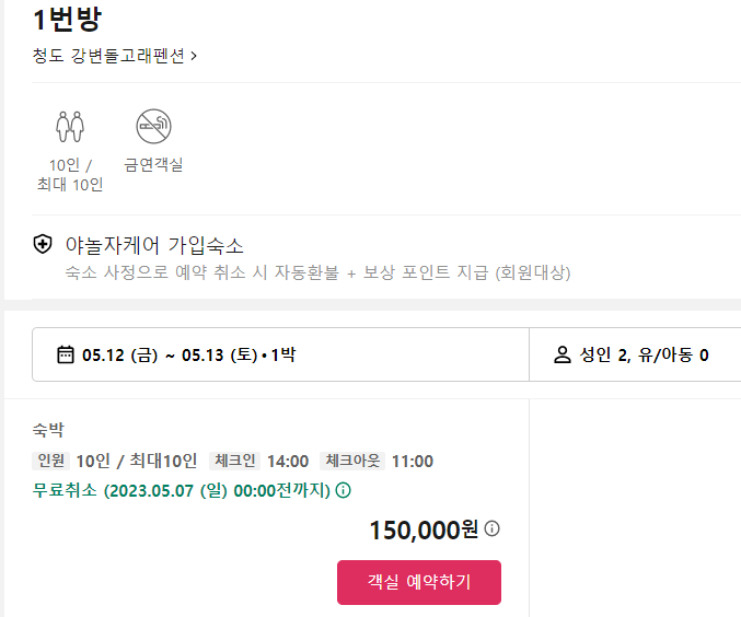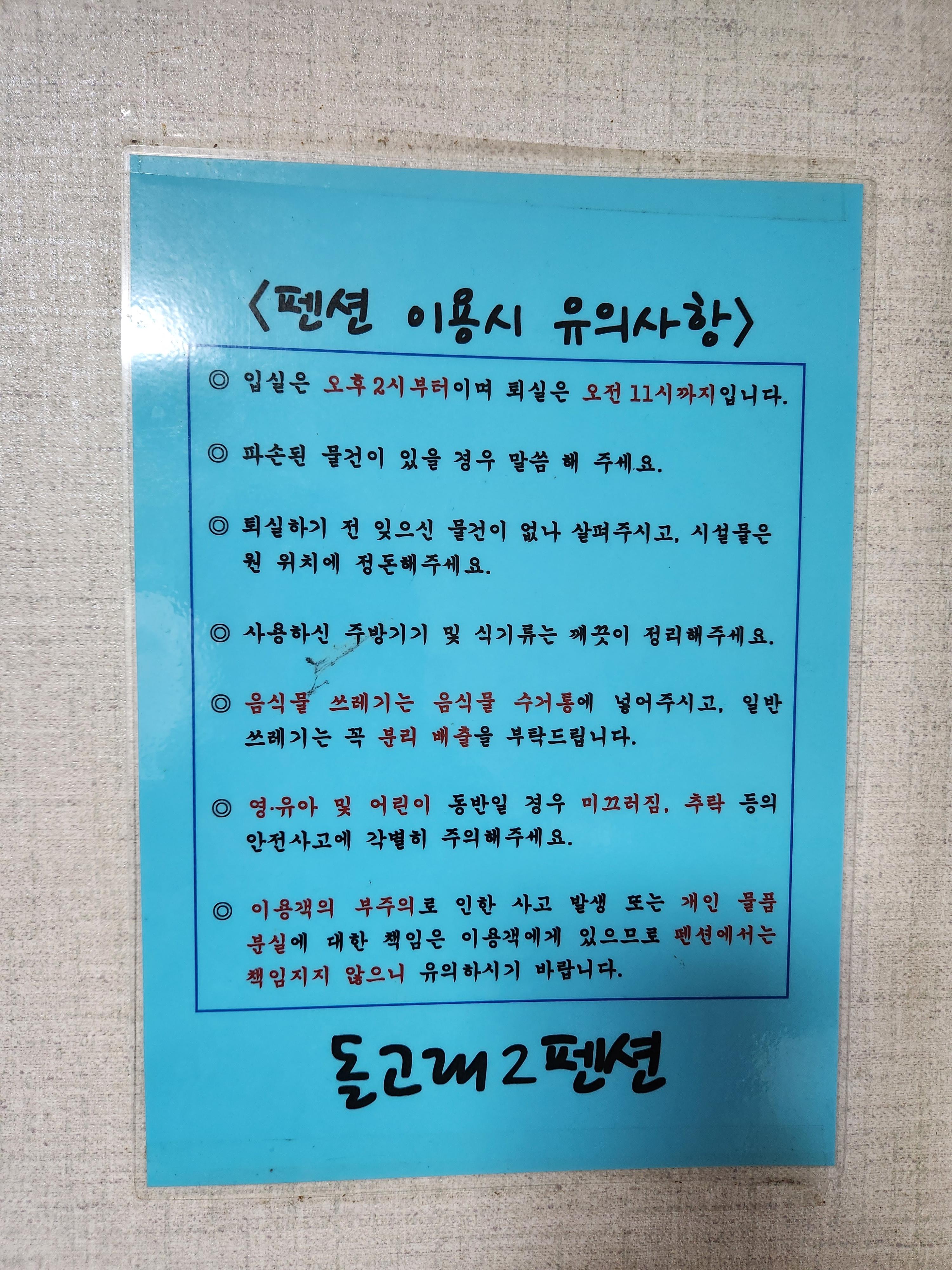 펜션 이용 시 유의사항. 입실 2시 퇴실 11시이다.