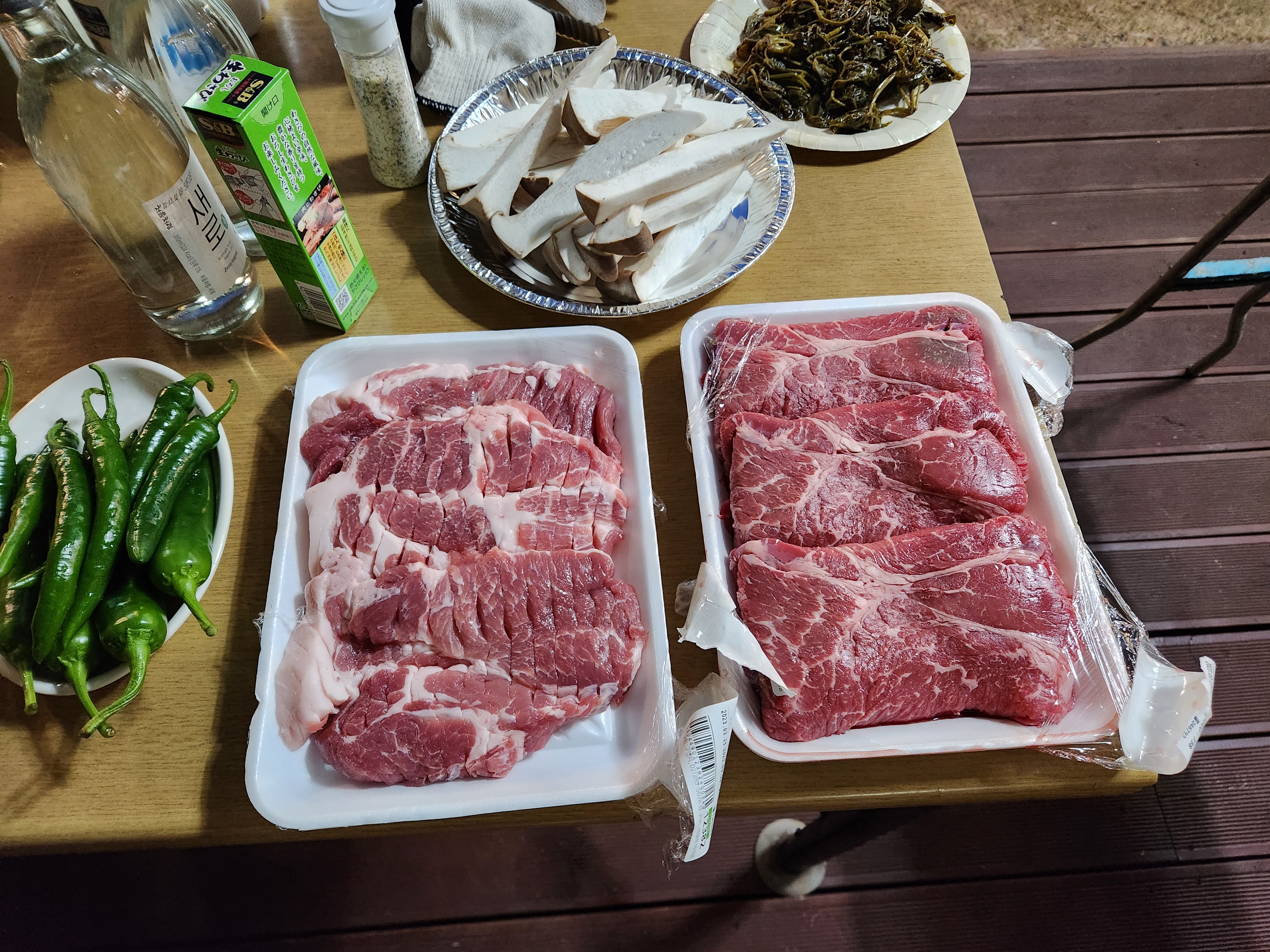 고기는 미국산 소고기와 국내산 삼겹살과 목살로 준비.