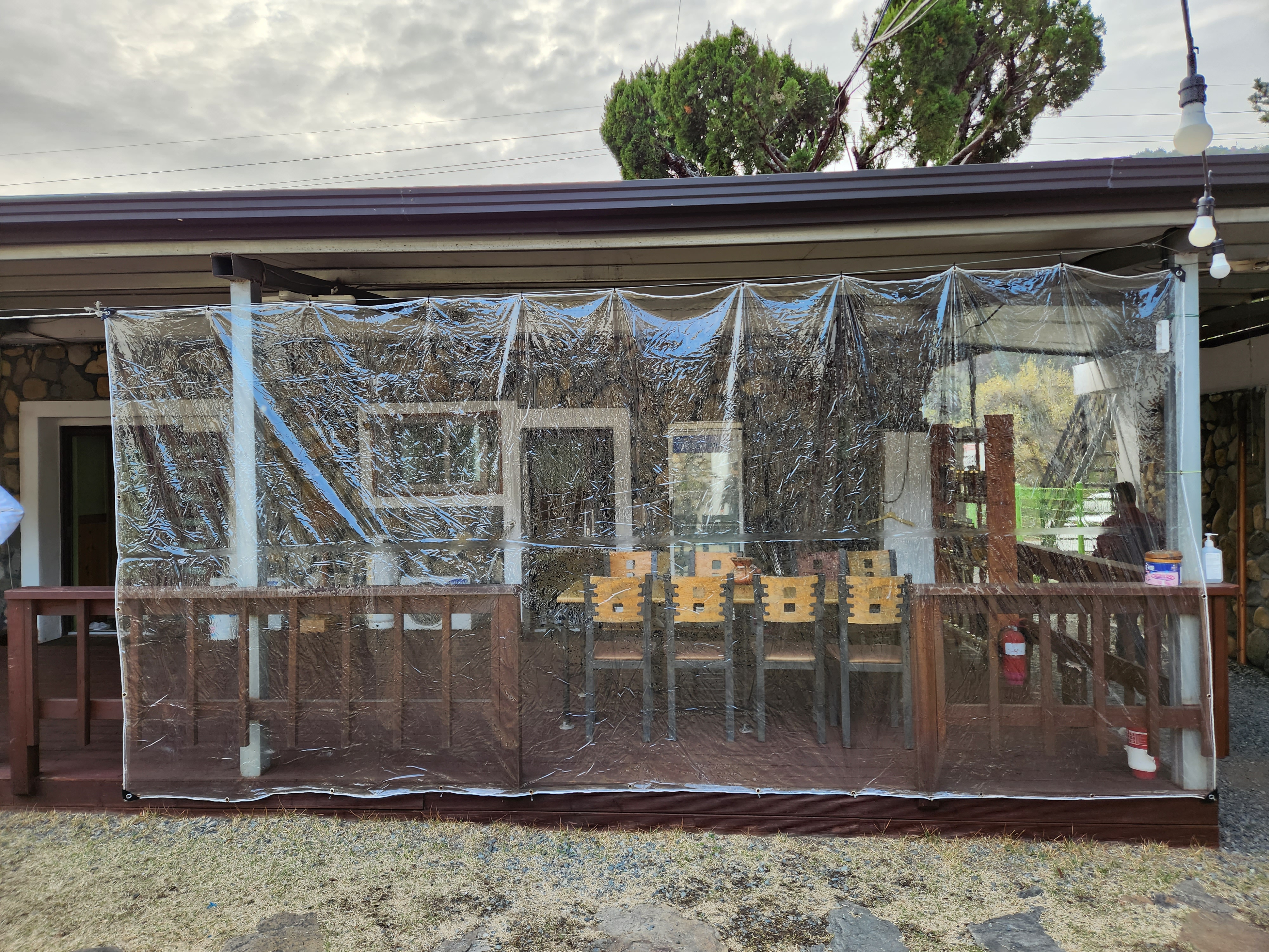 안쪽으로 가면 찬 바람을 대비해 비닐로 쌓여진 테라스가 보인다.